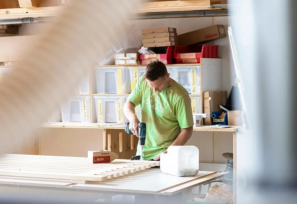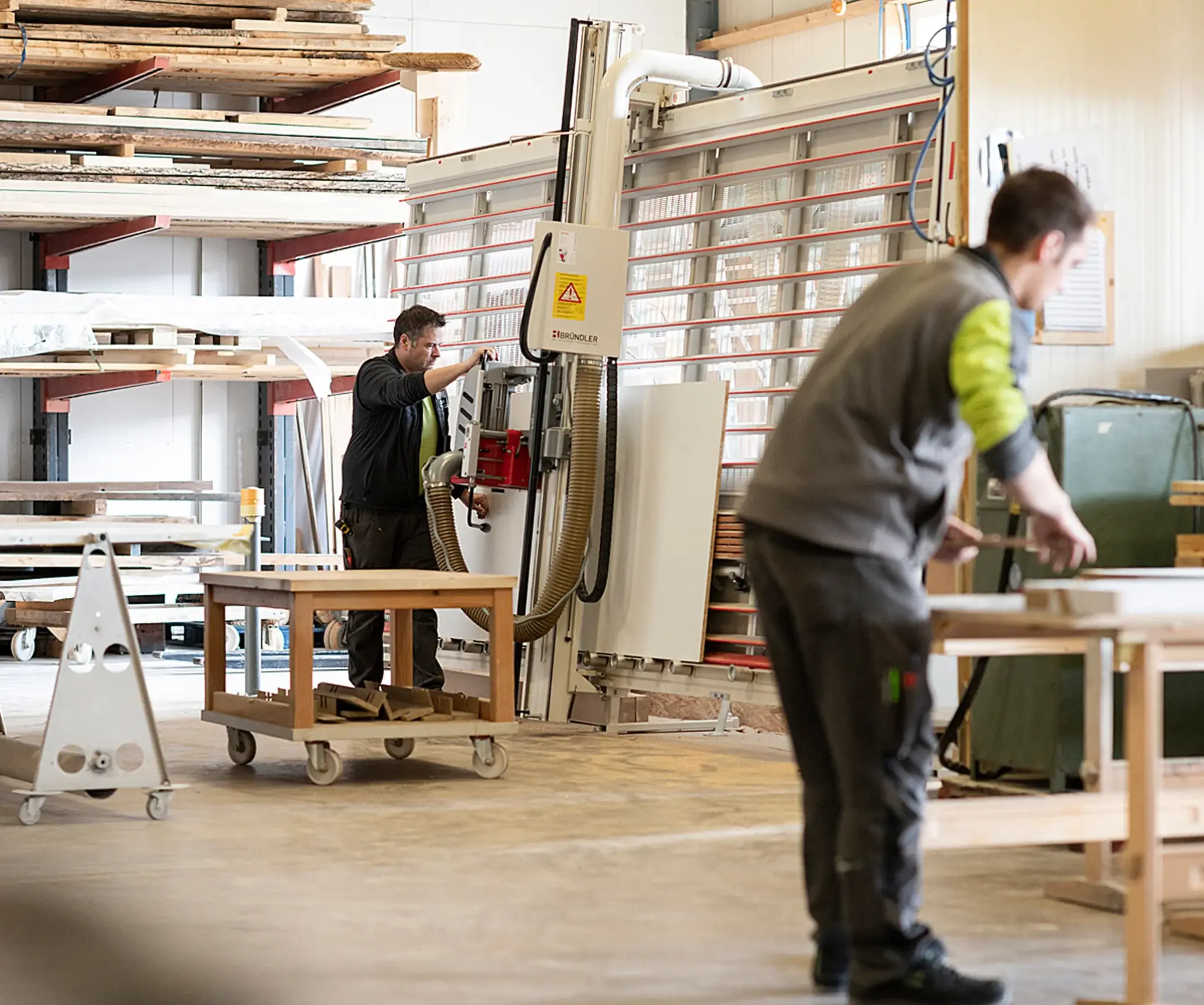 Nichts ist bei einem Projekt wichtiger als miteiander zu reden. Deshalb sprachen wir Ihre Sprache. Und zwar die Umgangssprache, weil wir aus der Branche kommen. Die Projektleiter mit denen Sie reden, sind erfahrene Schreinermeister, Techniker HF, Holzbauingenieure FH oder Betriebswirte. Das spart Erklärungen und führt uns schneller zu einer gemeinsamen Lösung. Um den Anschluss an die Zukunft zu sichern, arbeiten wir eng mit Hochschulen zusammen und bilden laufend Praktikanten aus. So holen wir um aktuelles Forschungswissen ins Unternehmen und geben es unmittelbar weiter. Was uns aber wirklich verbinden wird, ist die Freude am Job und die Arbeit mit faszinierenden Werkstoffen. Das sorgt auch intern bei uns für einen starken Teamspirit und dafür, dass wir überdurchschnittlich viele langjährige Mitarbeitende haben. Für Sie bedeutet das: Stabile, vertraute Ansprechpartner, die Ihr Unternehmen und Ihre Geschichte über Jahre hinweg kennen und begleiten.