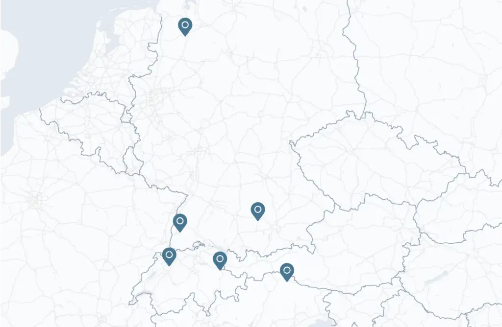 Sie finden uns ans ingesamt sechs Standorten in drei Ländern. Mit zwei Niederlassungen in der Schweiz, drei in Deutschland und einer in Italien verbinden wir regionale Präsenz mit internationaler Ausrichtung.